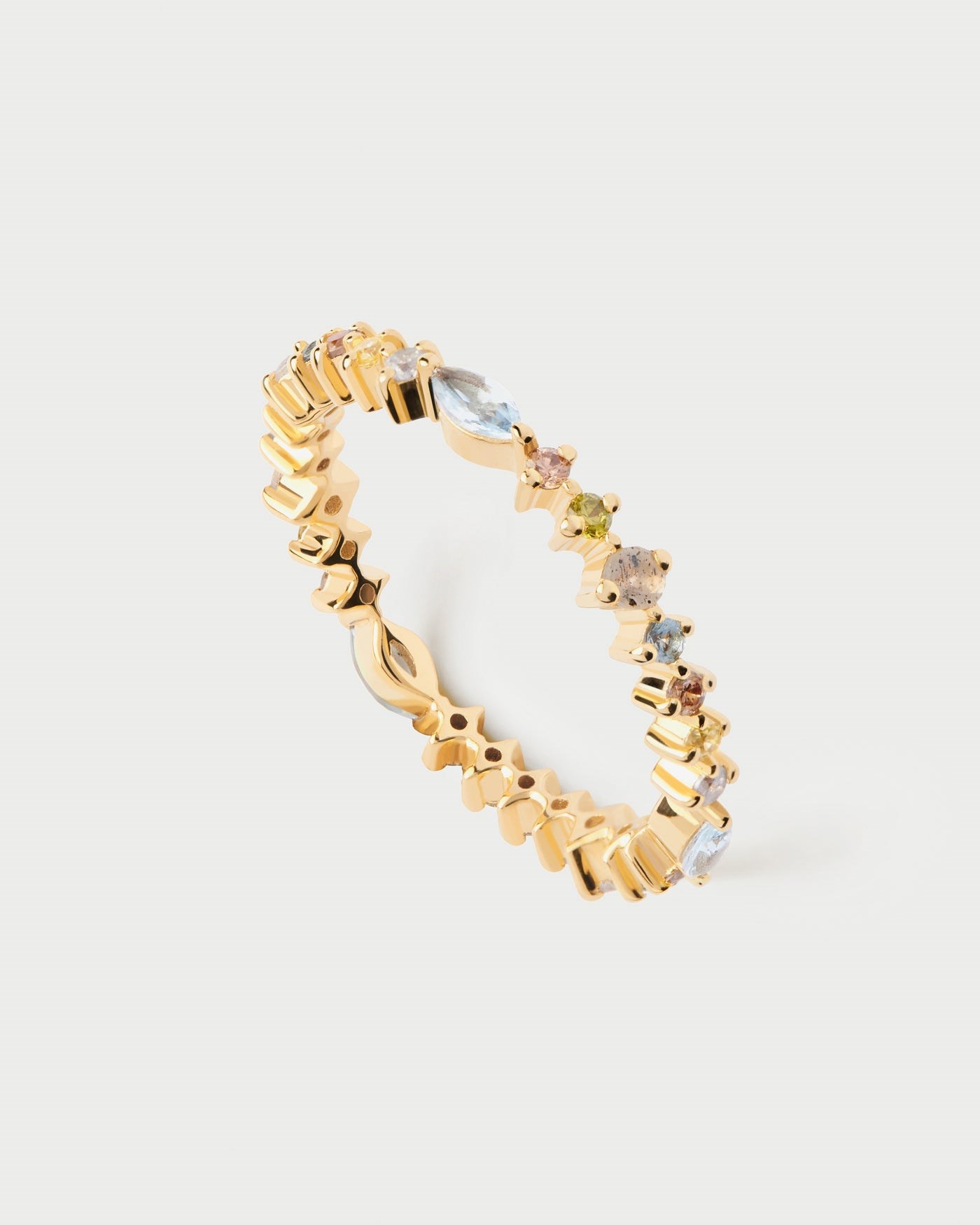 Anello donna pdpaola, an01-c80-10, collezione lotus, in argento con placcatura in oro 18kt e zirconi colorati. misura 10.