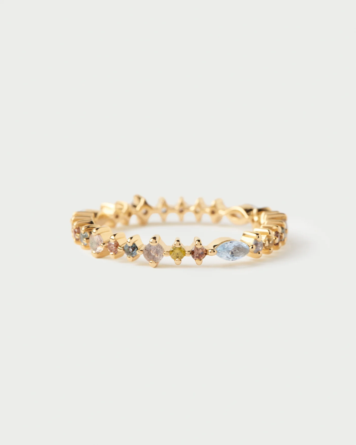 Anello donna pdpaola, AN01-C80-12, collezione lotus, in argento con placcatura in oro 18kt e zirconi colorati. misura 12.