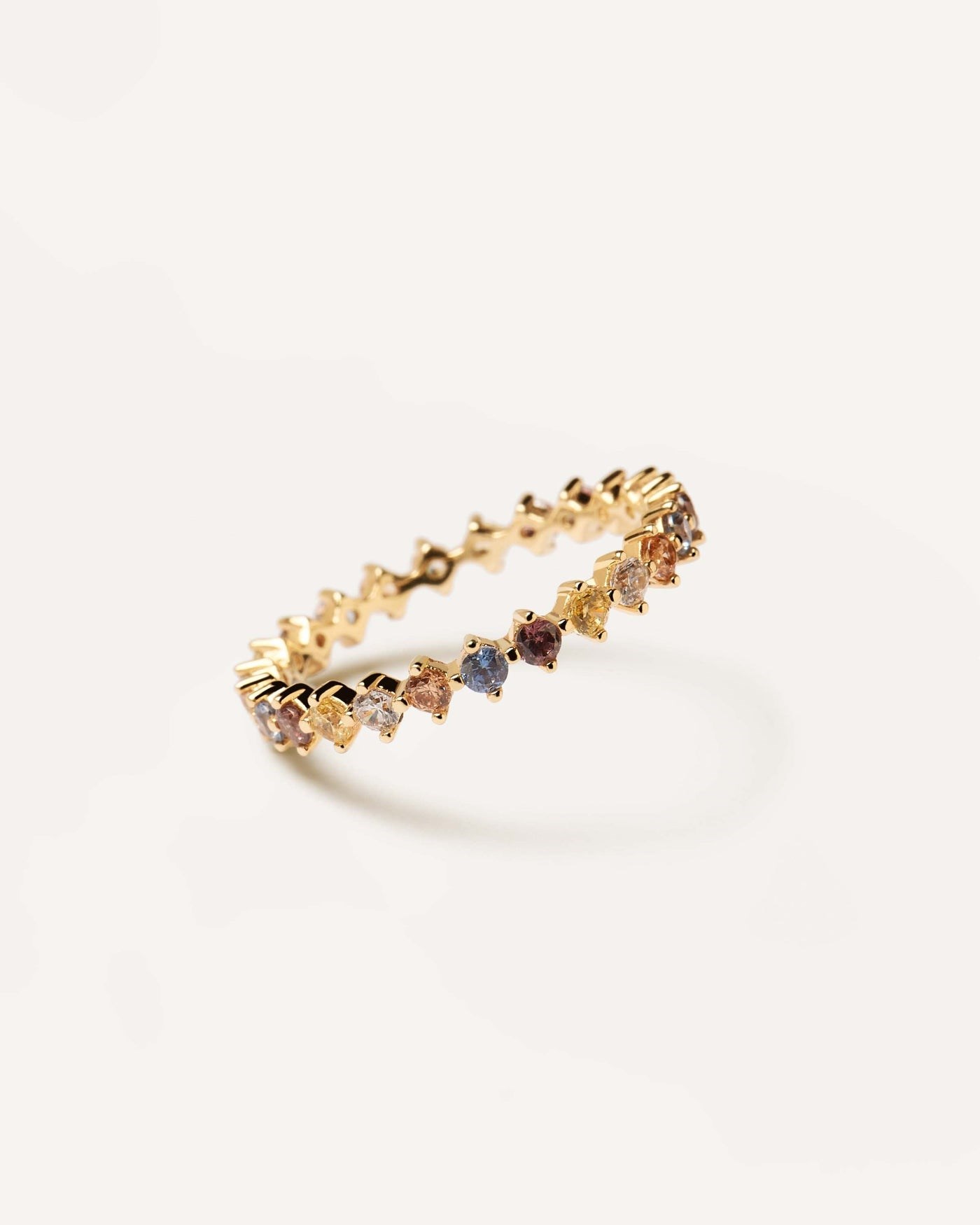 Anello donna pdpaola, AN01-209-10, collezione sage, in argento placcato in oro con pietre colorate. misura 10.