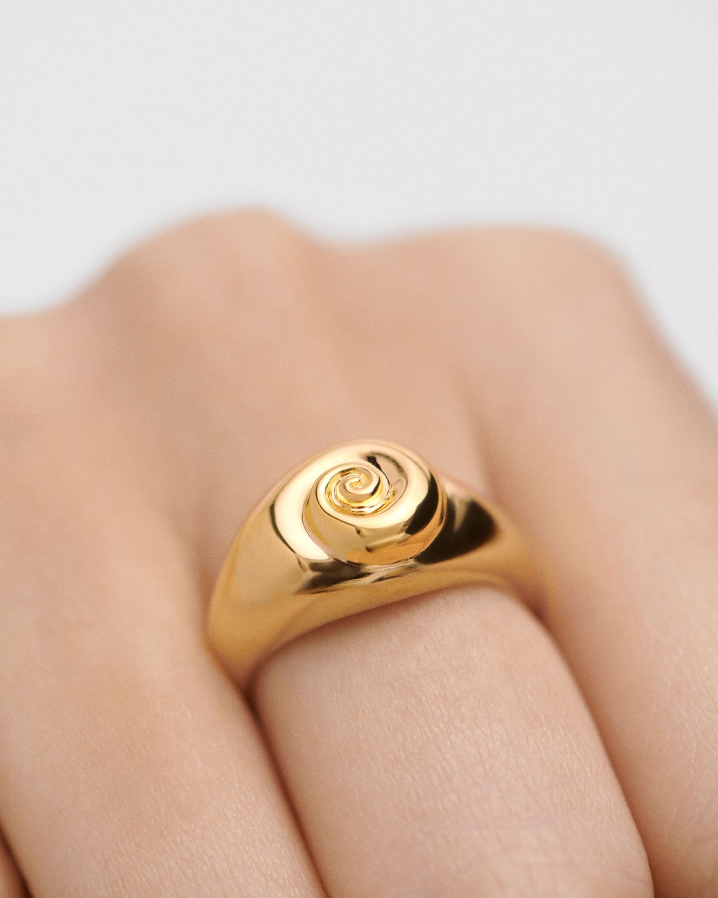 Anello donna pdpaola, AN01-C58-12, collezione shell, in argento placcato oro con motivo di lumaca di mare. misura 12. Larghezza dell'anello: 10, 20 mm Peso: 5, 42 g