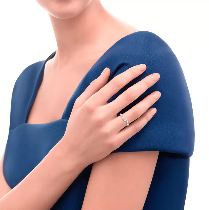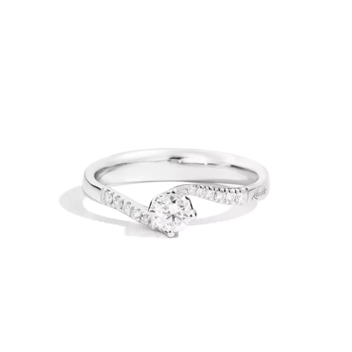 Anello donna recarlo , R01SP195/050, collezione anniversary in oro bianco 18 kt con diamante taglio brillante e pavè di diamanti da 0.55 ct, g colore si purezza.