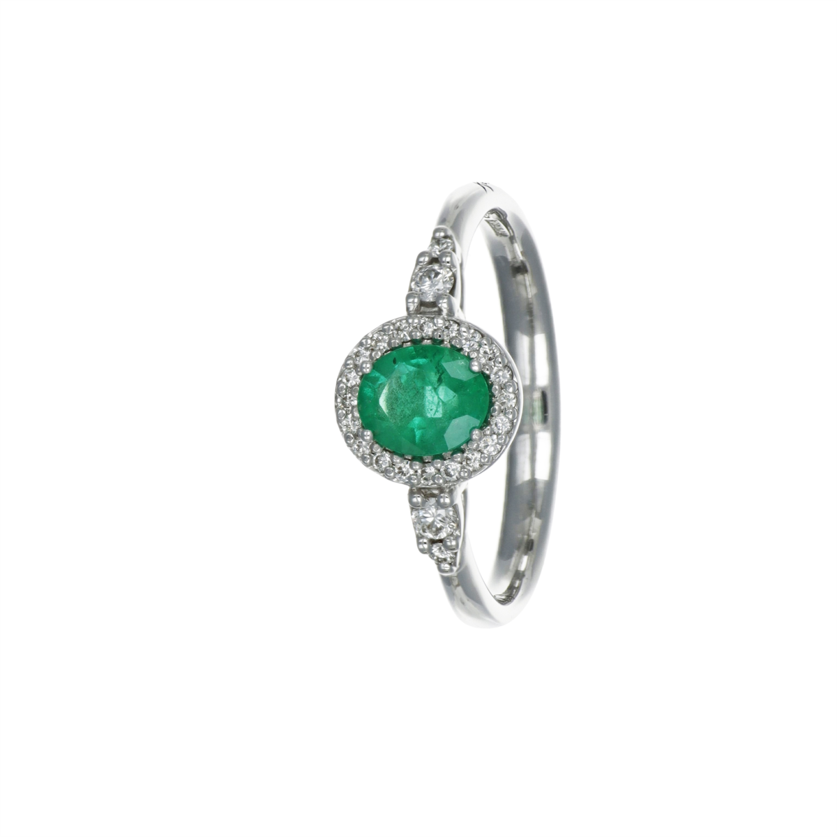 Anello donna recarlo, XE 174/BSM2, collezione classici, in oro bianco 18kt con diamanti 0.11ct e smeraldo 0.07ct