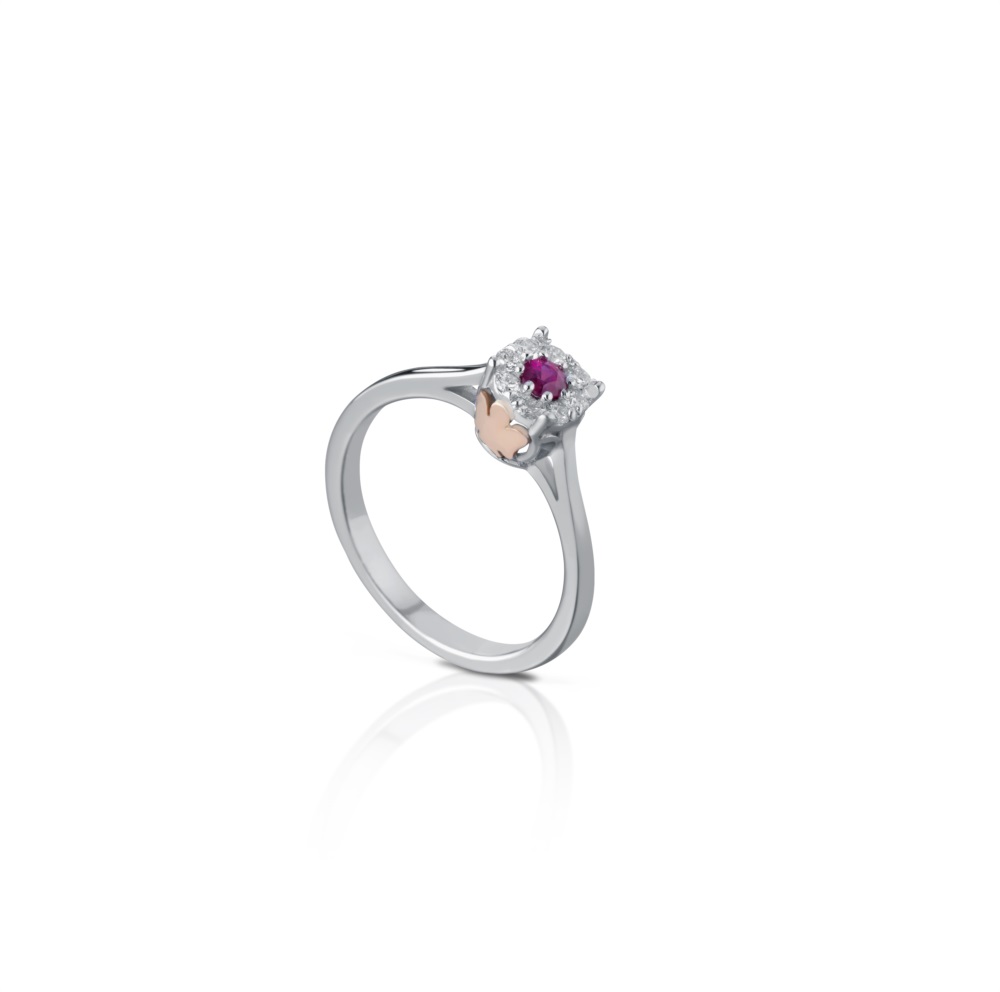 Anello donna roberto giannotti, Lux202r, collezione angeli, in oro bianco/rosa 9kt, diamanti 0, 20ct e rubini 0, 10ct