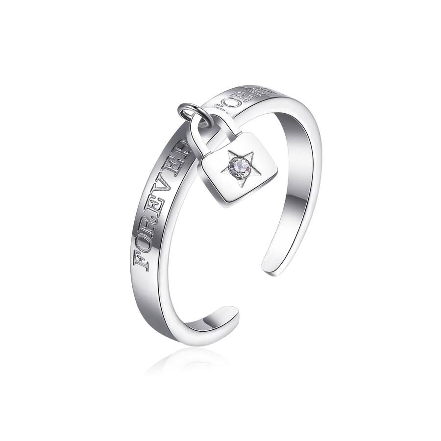 Anello donna s'agapò, Sck149, collezione click, in acciaio, pendente lucchetto con cristallo e scritta 'forever'