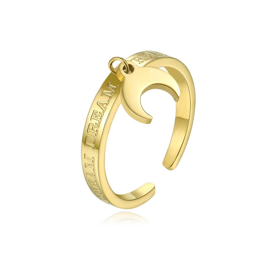 Anello donna s'agapò, Sck151, collezione click, in acciaio dorato, pendente mezzaluna e scritta 'dream', misura regolabile