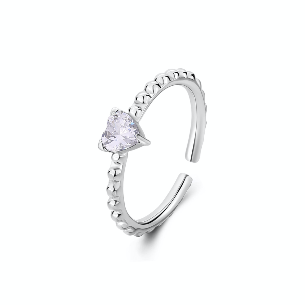 Anello donna sagapò, SDZ124, collezione dazzly, in acciaio 316L con cubic zirconia a forma di cuore. misura regolabile.