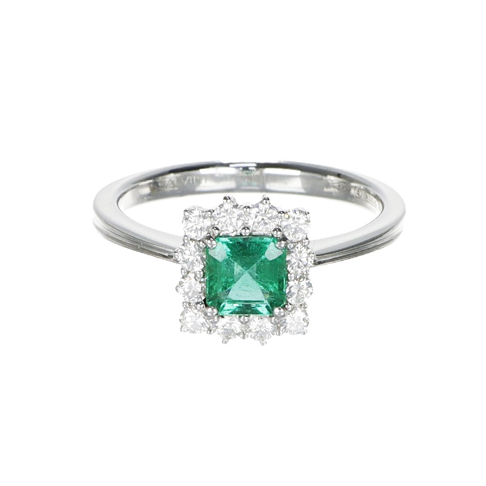Anello donna salvini, 20102531, collezione classico, in oro bianco 18kt con diamanti 0.30ct e smeraldo 0.56ct