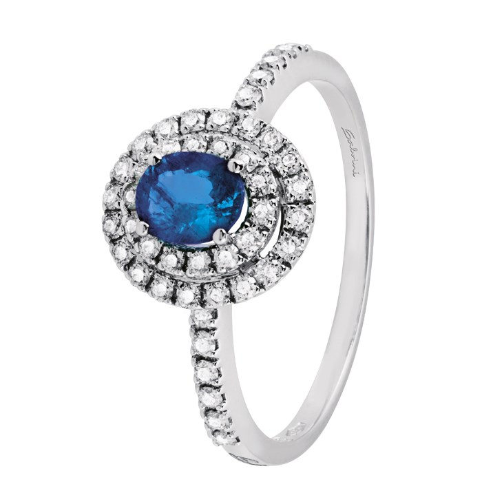 Anello donna salvini, 20057682, collezione dora, in oro bianco 18 kt, zaffiro blu 0, 54ct e diamante 0.32ct , colore gh