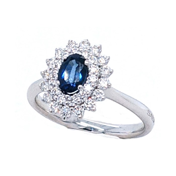 Anello donna bliss gioielli, 20113644, collezione love for color, in oro bianco 18kt Tipo Pietra: Diamante/zaffiro Taglio pietra: Ovale Caratura: 0.69 Ct.pietre fini: 1.16 Colore Diamante: GH