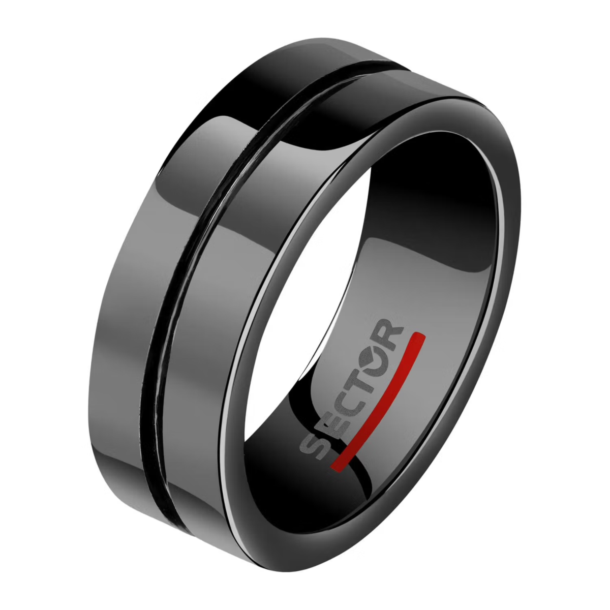 Anello uomo sector, SACX17029, collezione row, in acciaio nero con ceramica nera, misura 29