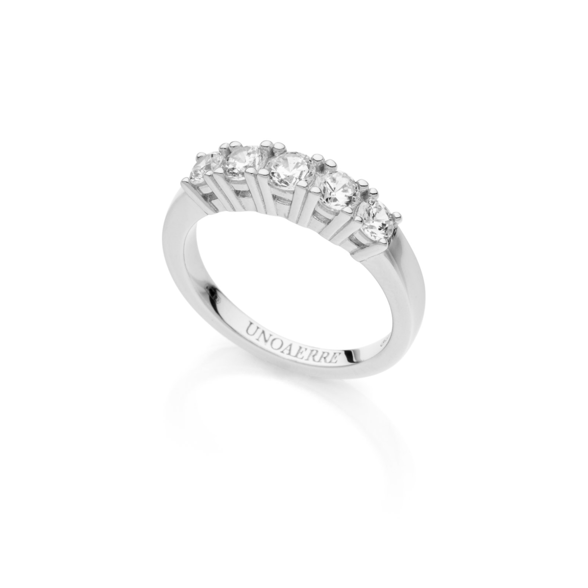 Anello donna unoaerre, 6235/17, collezione argento luxury, in argento rodiato con 5 pietre zirconia cubica bianca. misura 17.