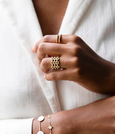 Anello donna zag bijoux, SRL26642-01UNI58, collezione bayard, in acciaio con placcatura dorata, composto da maglie interconnesse, che creano l'effetto di un orologio.