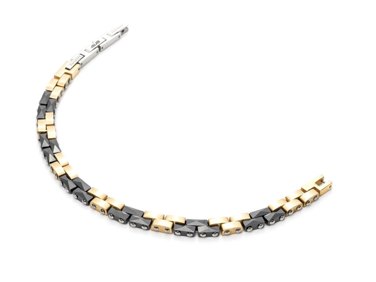 Bracciale uomo 4us cesare paciotti, 4UBR5134, collezione autunno inverno, in acciaio/acciaio dorato e ceramica nera, lunghezza 21cm