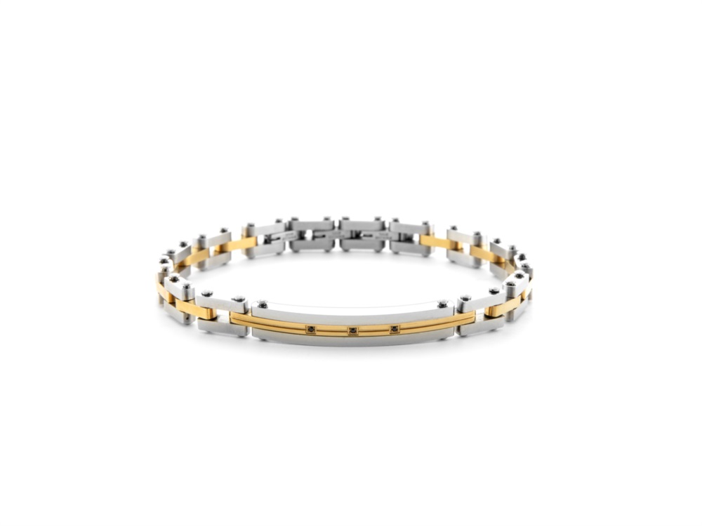 Bracciale uomo 4us cesare paciotti, 4UBR6173, collezione autunno inverno, in acciaio/acciaio dorato e zirconi neri, lunghezza a tre misure da 18cm a 21cm