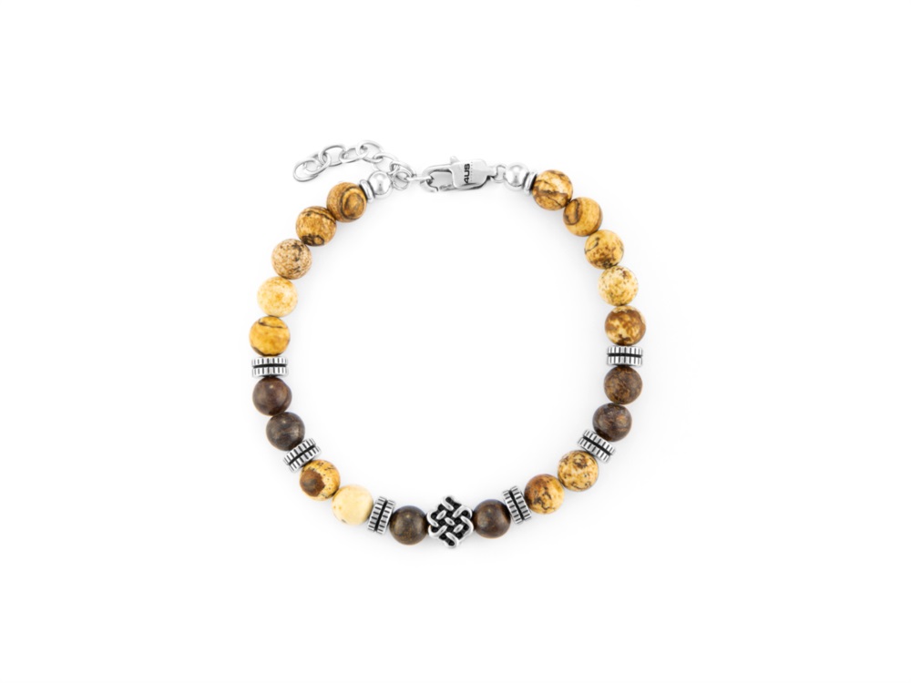 Bracciale uomo 4us cesare paciotti, 4UBR6234, collezione autunno inverno, in acciaio con diaspro marrone e bronzite, lunghezza 18cm+4cm di estensione