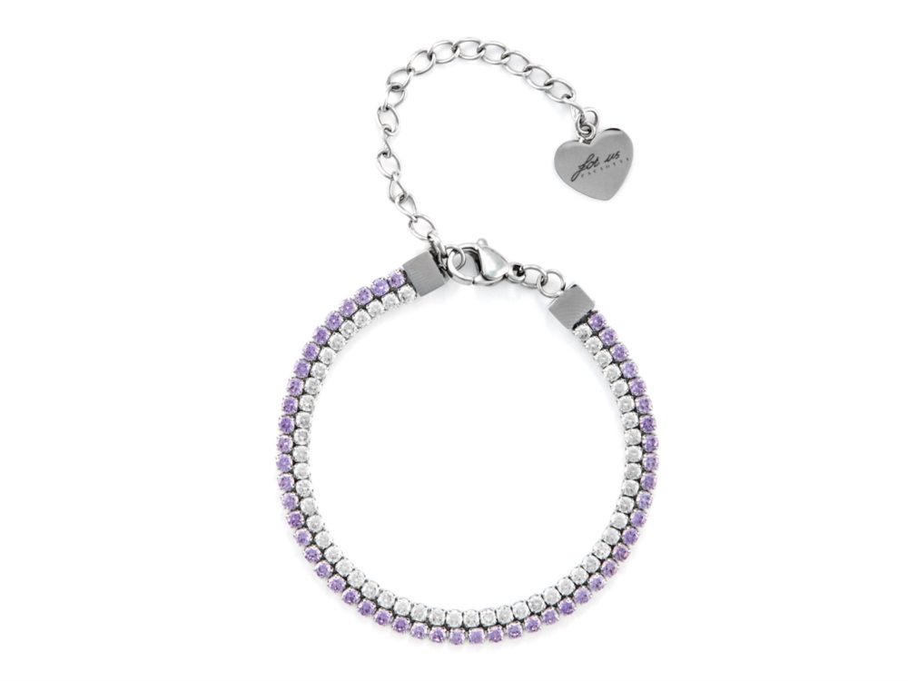 Bracciale donna 4us cesare paciotti, 4UBR6329W, collezione autunno inverno, in acciaio e cristalli bianchi e viola, lunghezza 15cm+5cm di estensione