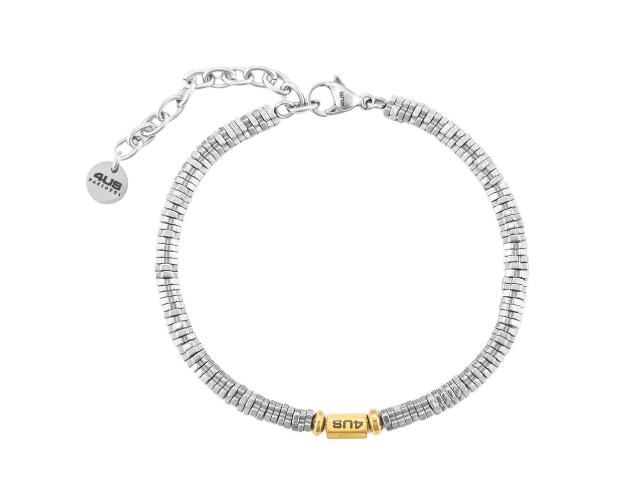 Bracciale uomo 4us cesare paciotti, 4UBR7025, collezione autunno inverno, in acciaio 316L con inserto centrale in acciaio dorato e logo.
