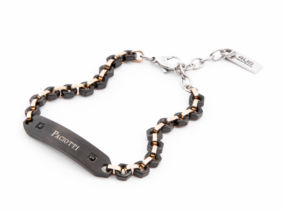 Bracciale uomo 4us cesare paciotti, 4UBR4092, collezione primavera estate, in acciaio nero/acciaio rosa e zirconi neri, lunghezza 18cm+4cm in riduzione