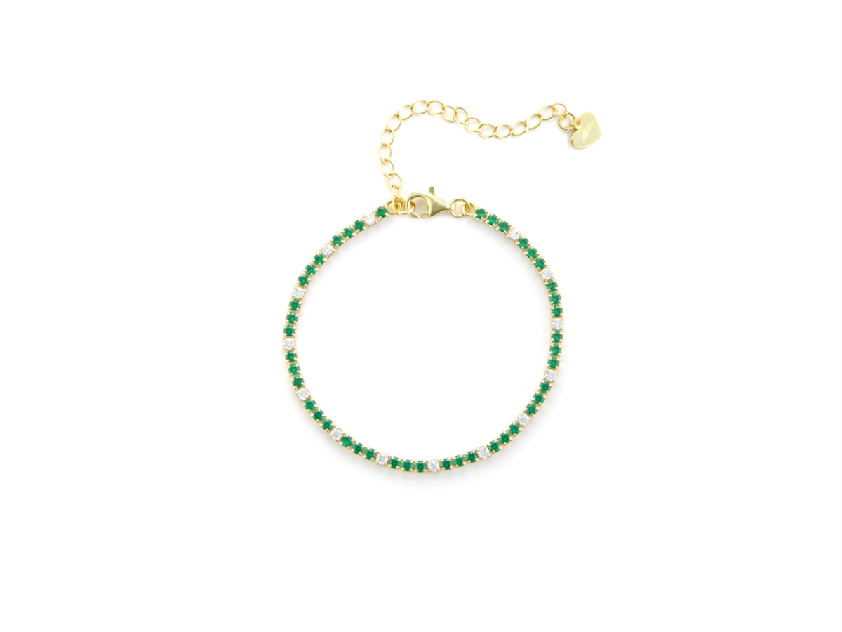 Bracciale donna 4us cesare paciotti, 4UBR5822W, collezione primavera estate, in argento 925 dorato e zirconi verdi e bianchi, lunghezza 15cm+5cm di estensione