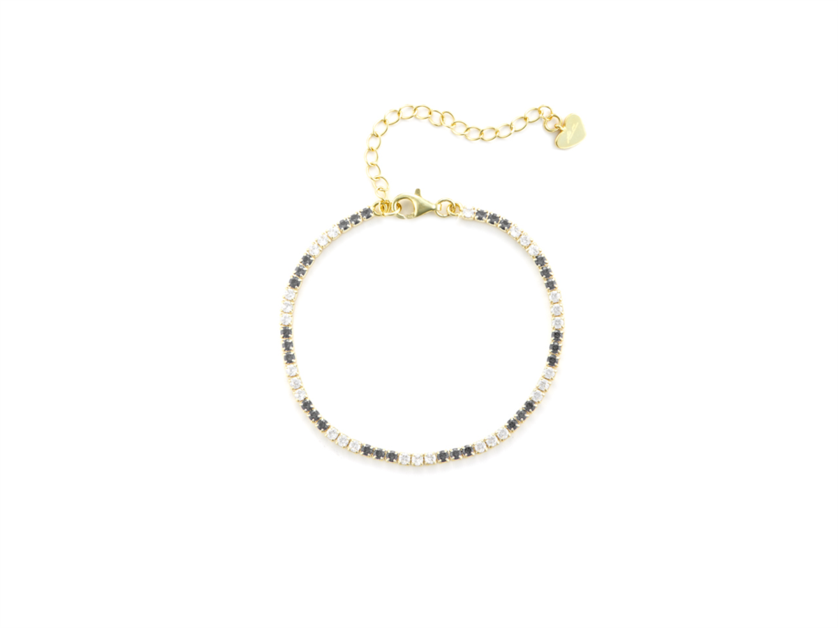 Bracciale donna 4us cesare paciotti, 4UBR5824W, collezione primavera estate, in argento 925 dorato e zirconi bianchi e neri, lunghezza 15cm+5cm di estensione