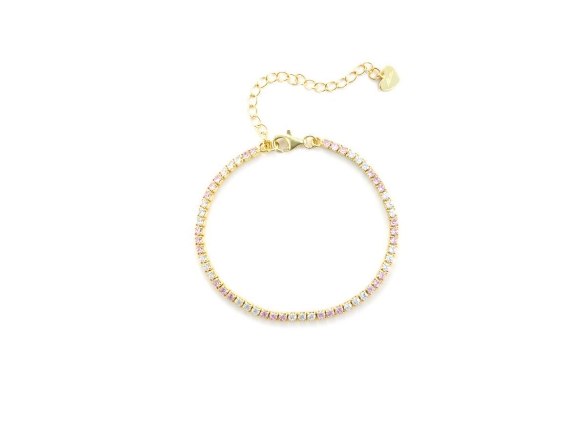 Bracciale donna 4us cesare paciotti, 4UBR5830W, collezione primavera estate, in argento 925 dorato e zirconi bianchi e rosa, lunghezza 15cm+5cm di estensione