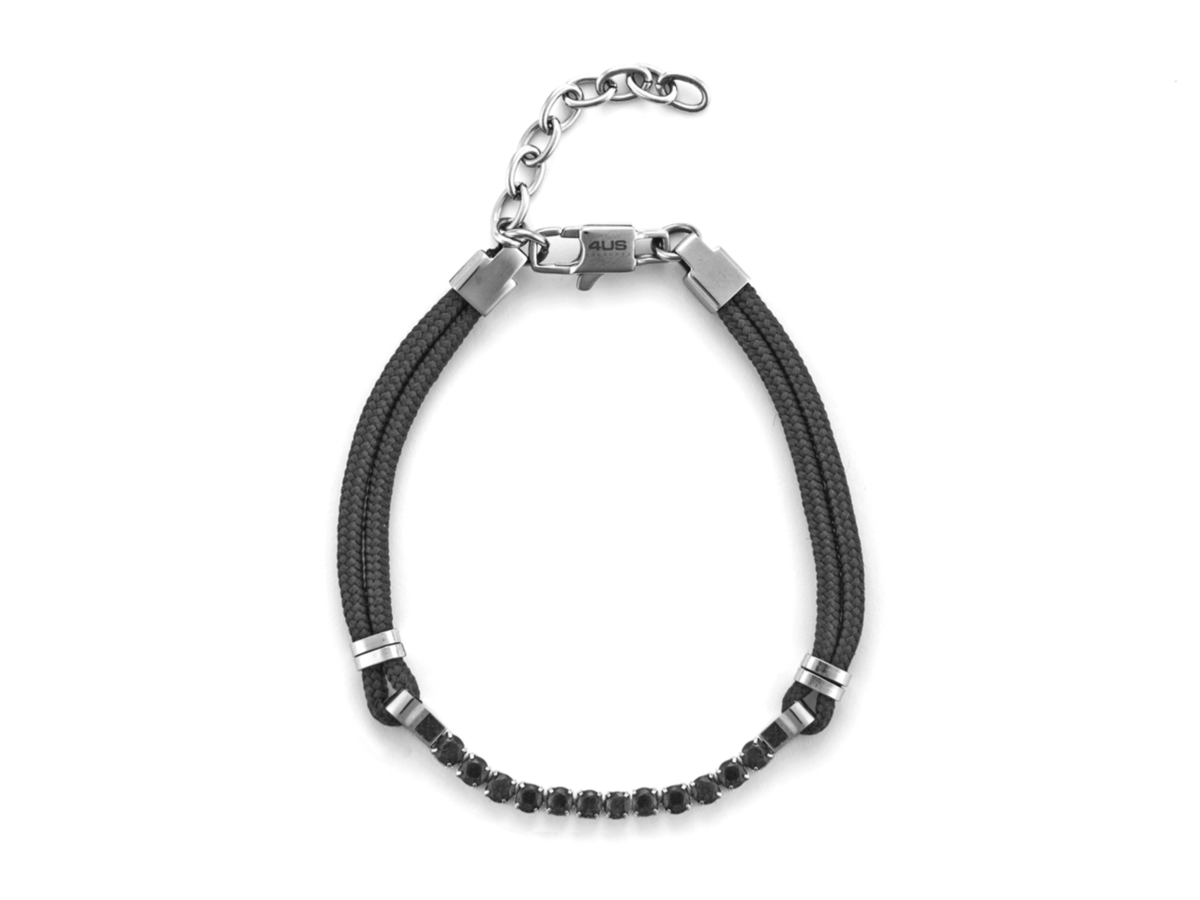 Bracciale uomo 4us cesare paciotti, 4UBR5960, collezione primavera estate, in acciaio con cordino nero e zirconi neri, lunghezza 18cm+4cm di estensione