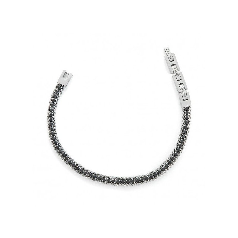 Bracciale tennis uomo 4us cesare paciotti, 4UBR6348, collezione primavera estate, in acciaio anallergico con cristalli neri, lunghezza 18+3