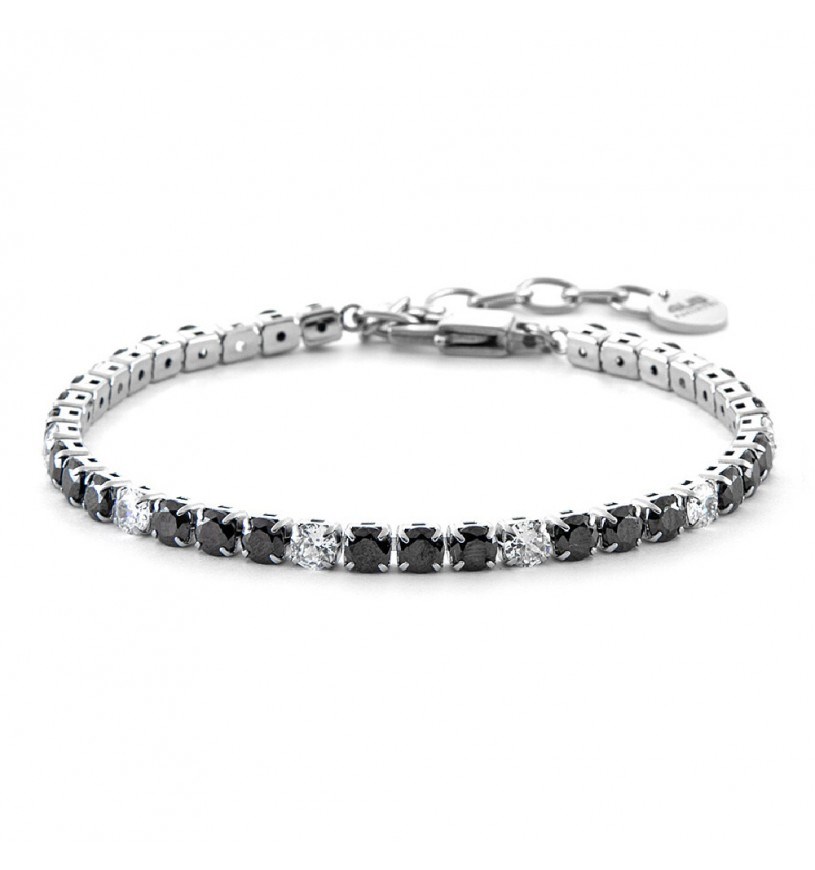 Bracciale uomo 4us cesare paciotti, 4UBR6353, collezione primavera estate, in acciaio 316L stile tennis con zirconi neri e bianchi.