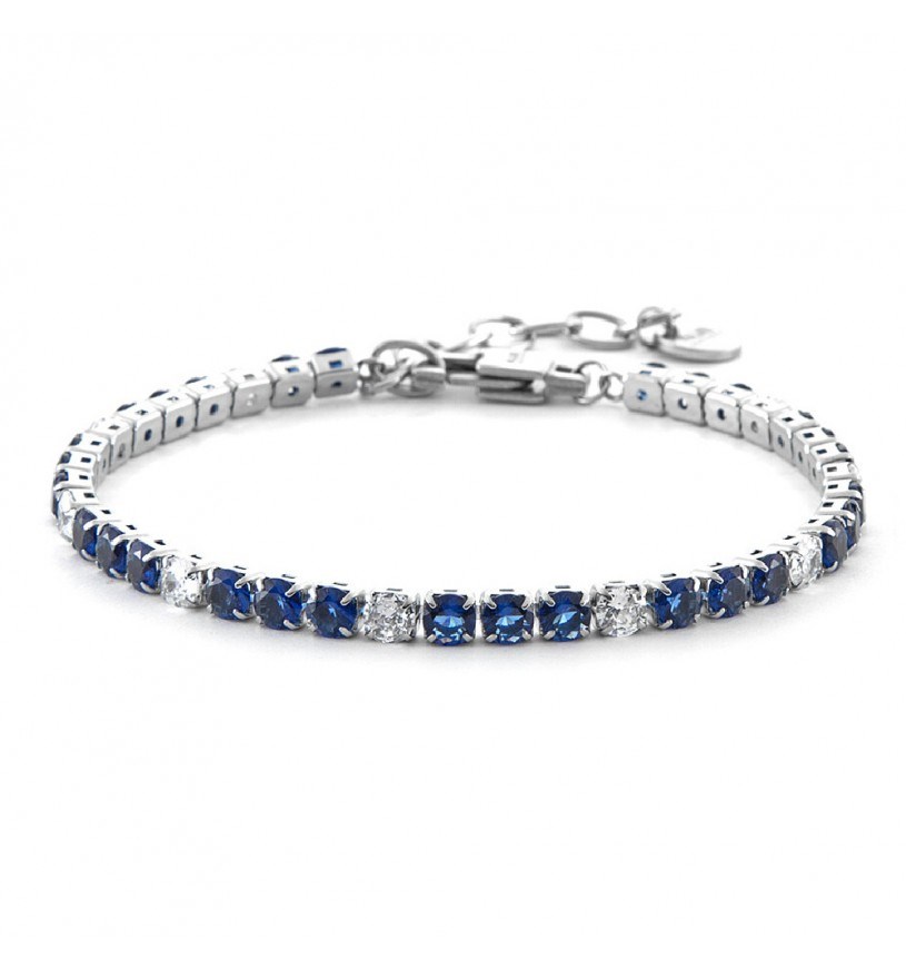 Bracciale uomo 4us cesare paciotti, 4UBR6354, collezione primavera estate, in acciaio 316L stile tennis con zirconi blu e bianchi. lunghezza totale di 18 cm + 3 cm.