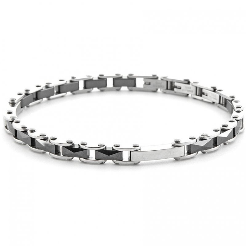 Bracciale uomo 4us cesare paciotti, 4UBR6368, collezione primavera estate, in acciaio anallergico con dettagli neri, lunghezza 21cm