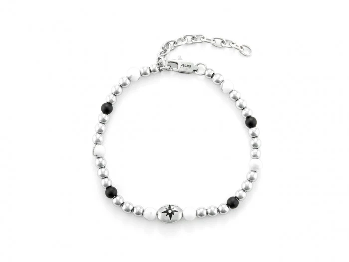 Bracciale uomo 4us cesare paciotti, 4UBR6449, collezione primavera estate, in acciaio anallergico con rosa dei venti e zircone centrale