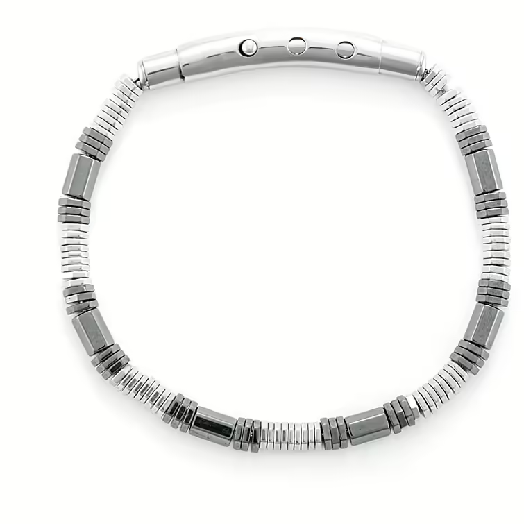 Bracciale uomo 4us cesare paciotti, 4ubr6455, collezione primavera estate, in acciaio anallergico rodiato ed elementi in ematite chiara e scura.