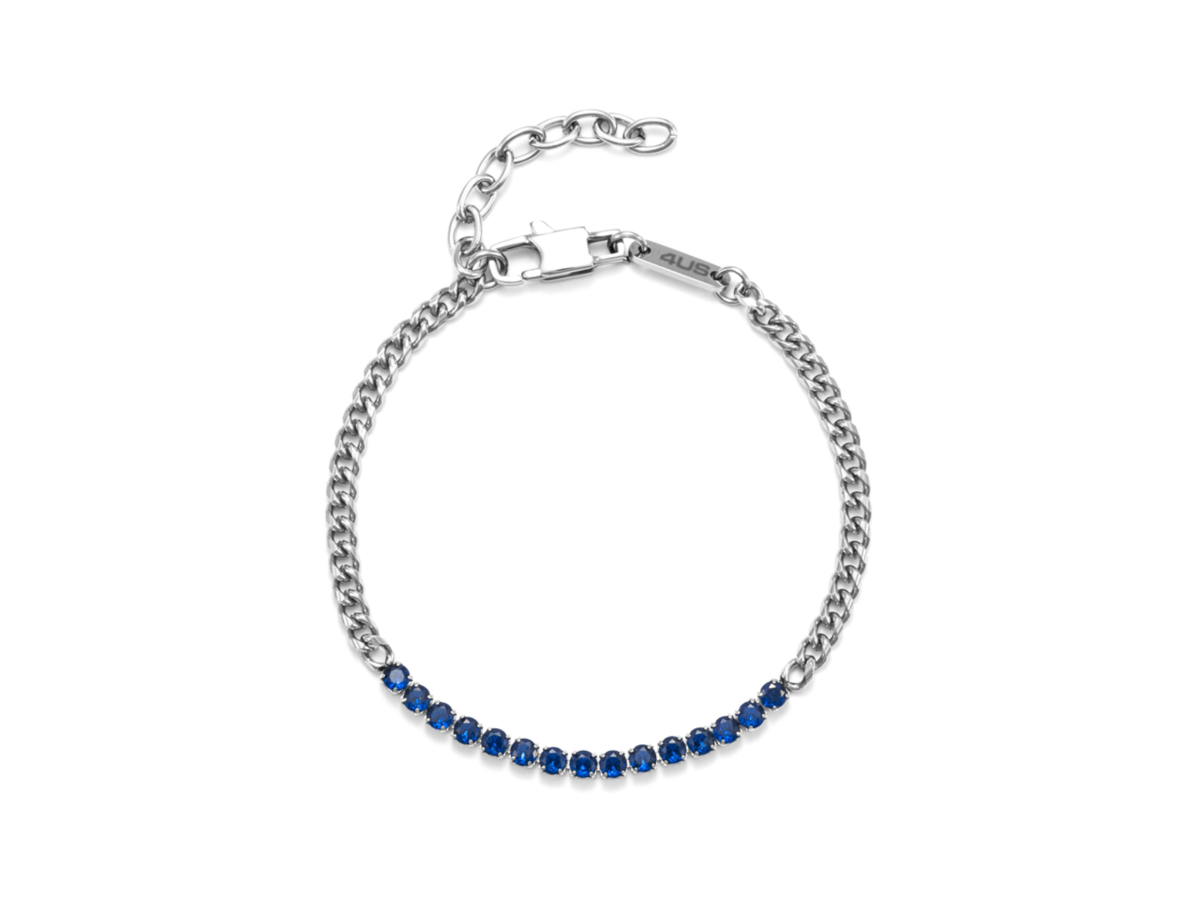 Bracciale uomo 4us cesare paciotti, 4UBR5600, collezione san valentino, in acciaio e zirconi blu, lunghezza 18cm + 4cm di estensione