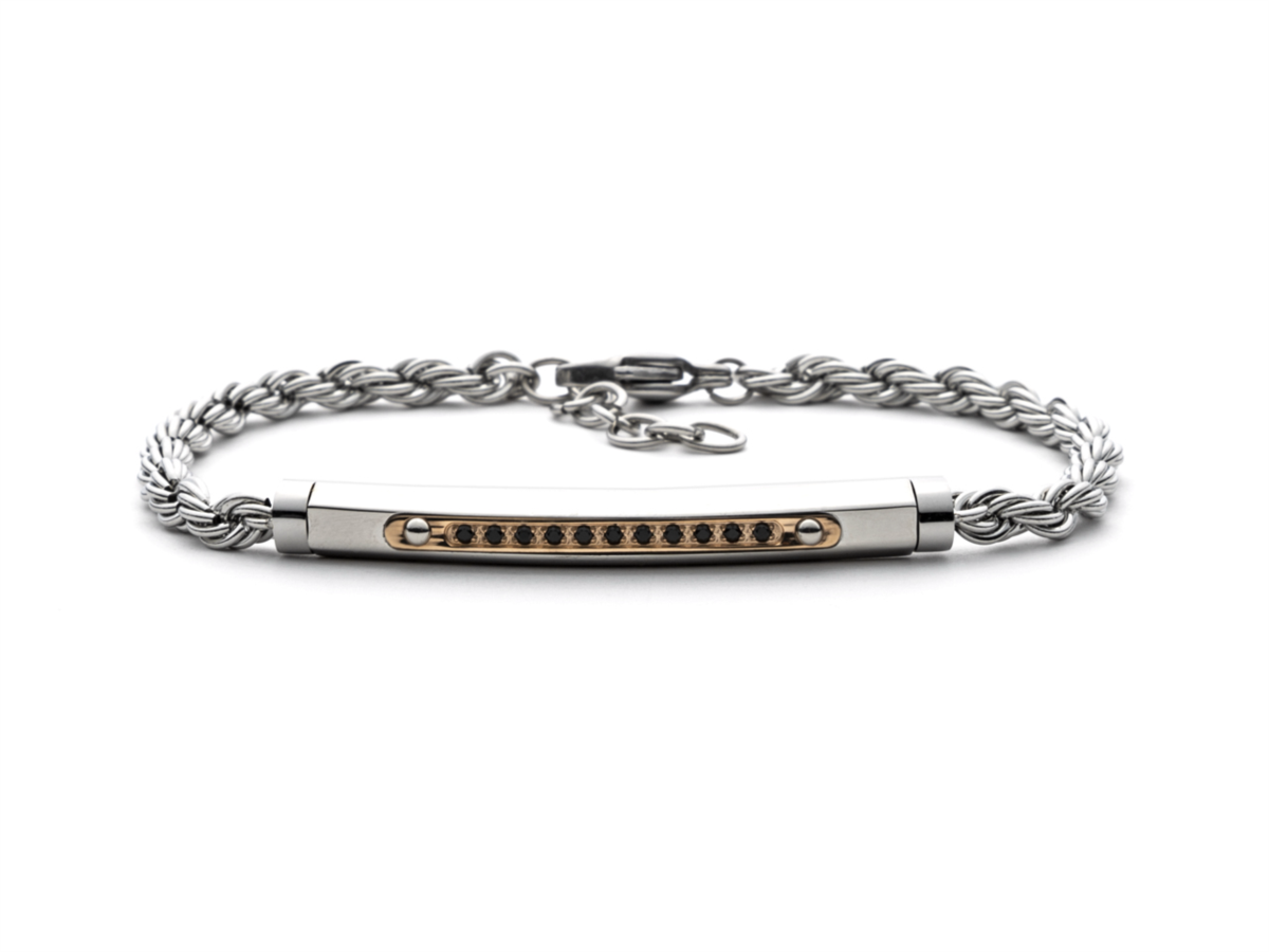 Bracciale uomo 4us cesare paciotti, 4UBR5605, collezione san valentino, in acciaio/acciaio rosa e zirconi neri, lunghezza 18cm + 4cm di estensione