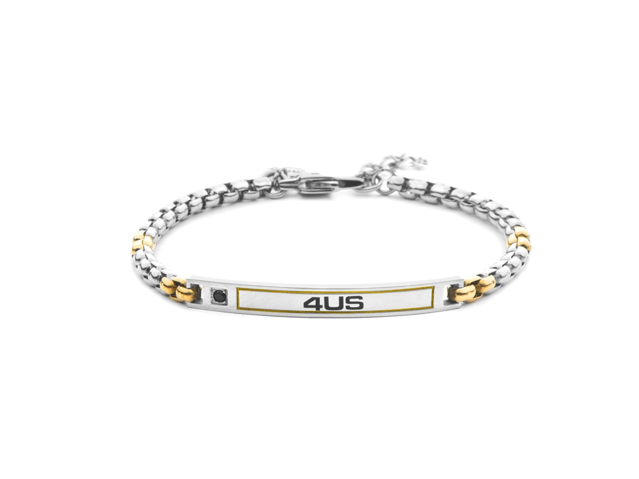 Bracciale uomo 4us cesare paciotti, 4UBR8445, collezione san valentino, in acciaio 316L bicolore con zirconi neri e logo.