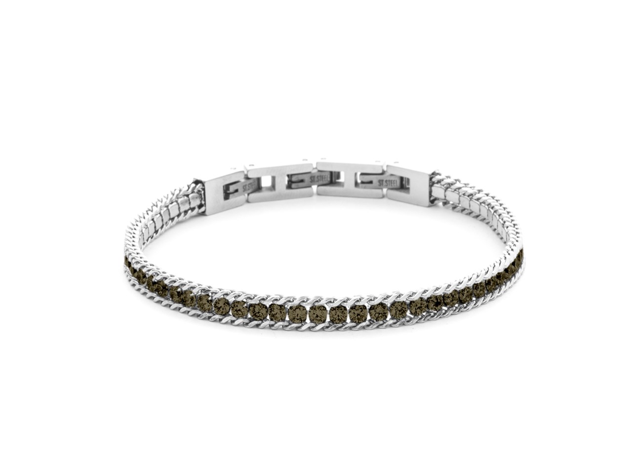 Bracciale uomo 4us cesare paciotti, 4UBR8503, collezione san valentino, in acciaio 316L stile tennis con zirconi marroni.