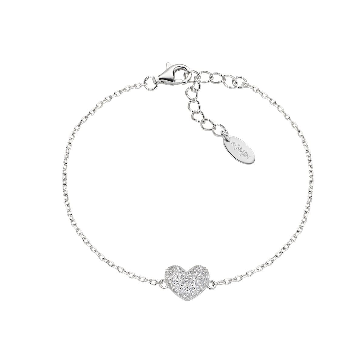 Bracciale donna amen, BRHBOBBZ, collezione amore, in argento 925 rodiato con cuore centrale leggermente bombato e impreziosito da un pavé di zirconi bianchi.