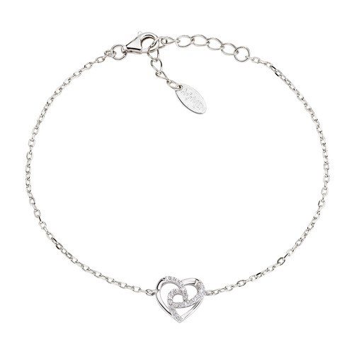 Bracciale donna amen, Brhhbbz, collezione amore, in argento 925 con zirconi bianchi, lunghezza 16cm+3cm
