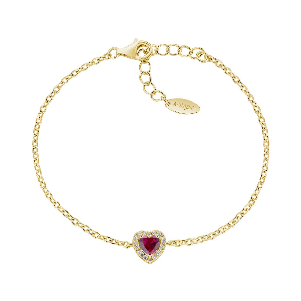 Bracciale donna amen, BRTICUGRZ, collezione amore infinito, in argento 925 dorato con cuore rosso centrale e zirconi bianchi. Lunghezza regolabile da 16 a 19 cm con allungo e chiusura a moschettone.