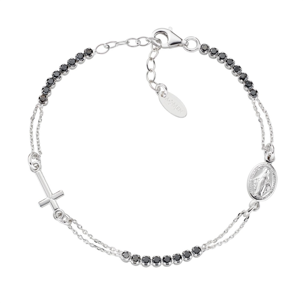 Bracciale donna amen, Brcrmibnz3, collezione croci, in argento con zirconi, lunghezza 16+3cm
