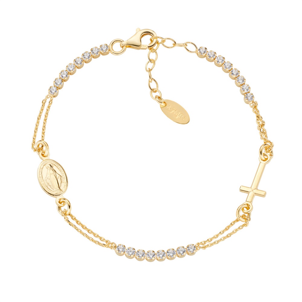 Bracciale donna amen, Brcrmigbz3, collezione croci, in argento 925 dorato con zirconi, lunghezza 16cm+3cm