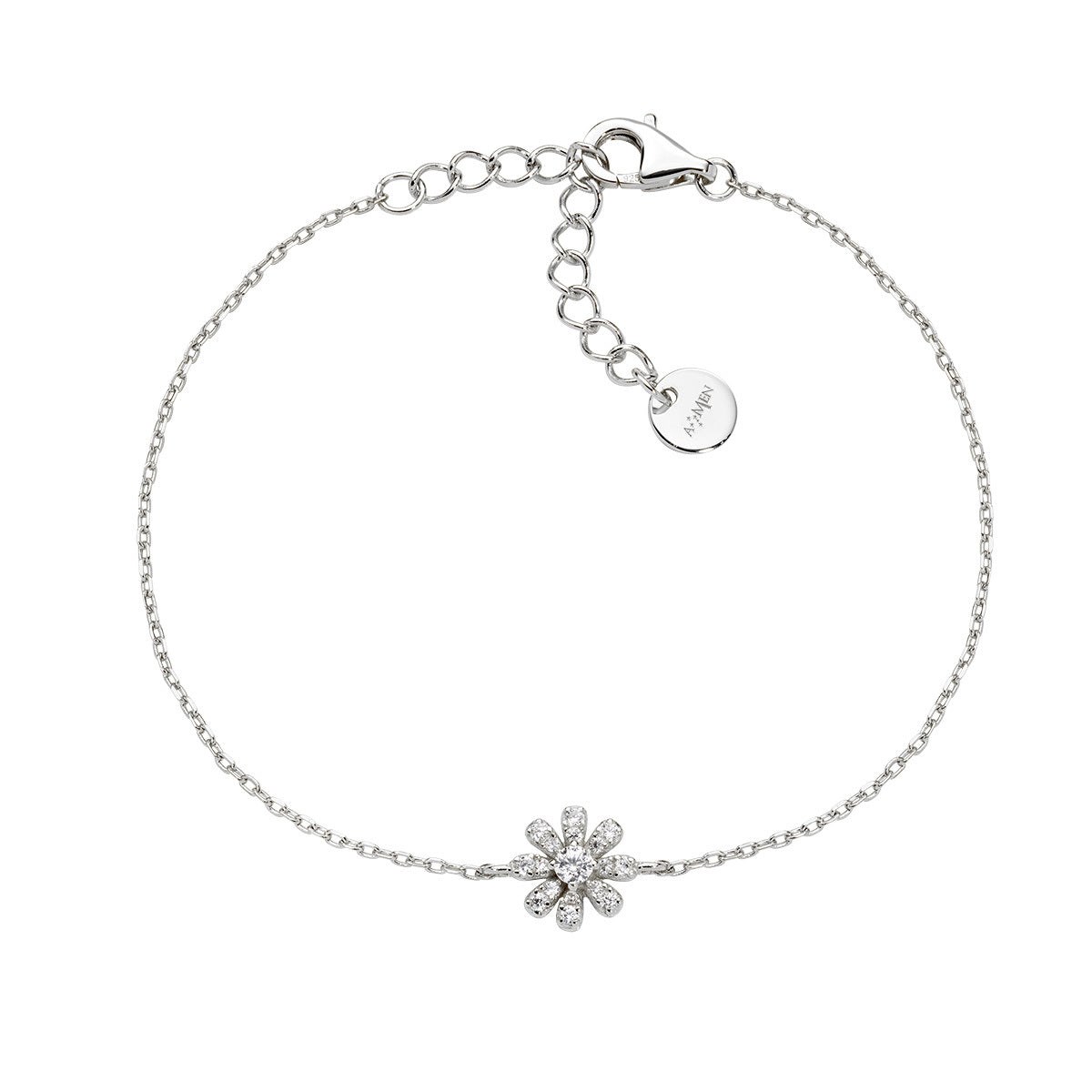 Bracciale donna amen, BRFIPBBZ3, collezione fiori, in argento 925 con zirconi, lunghezza regolabile da 16cm a 19cm