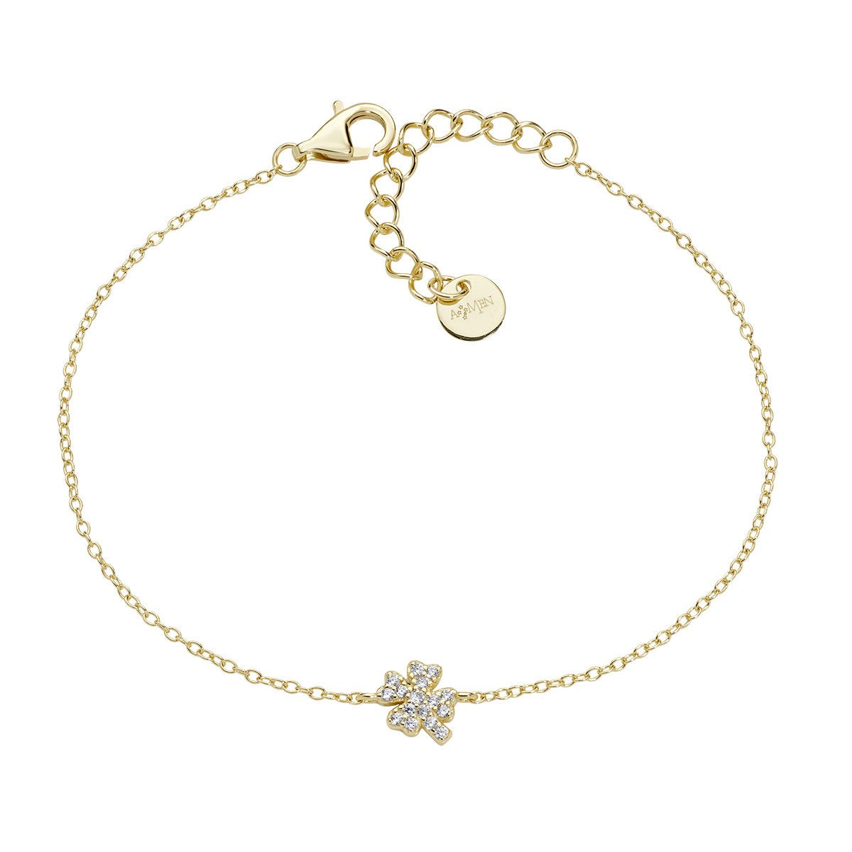 Bracciale donna amen, BRQUPGBZ3, collezione fortuna, in argento 925 dorato con zirconi, lunghezza regolabile da 16cm a 19cm