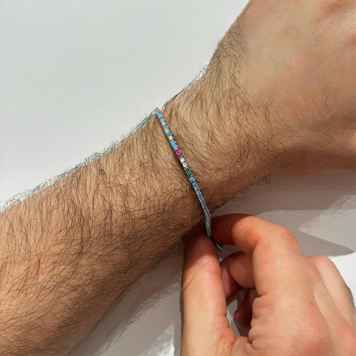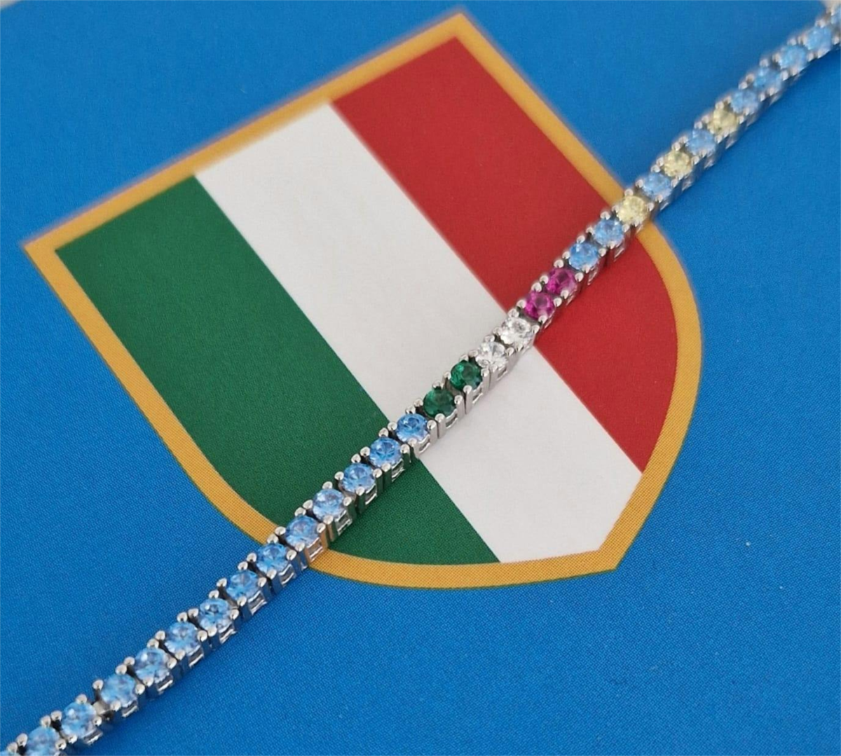 Bracciale unisex amen, BRTNNAB, collezione forza azzurri, in argento 925 rodiato con zirconi azzurri come la nostra squadra del cuore, e un Tricolore con zircone verde, bianco e rosso.