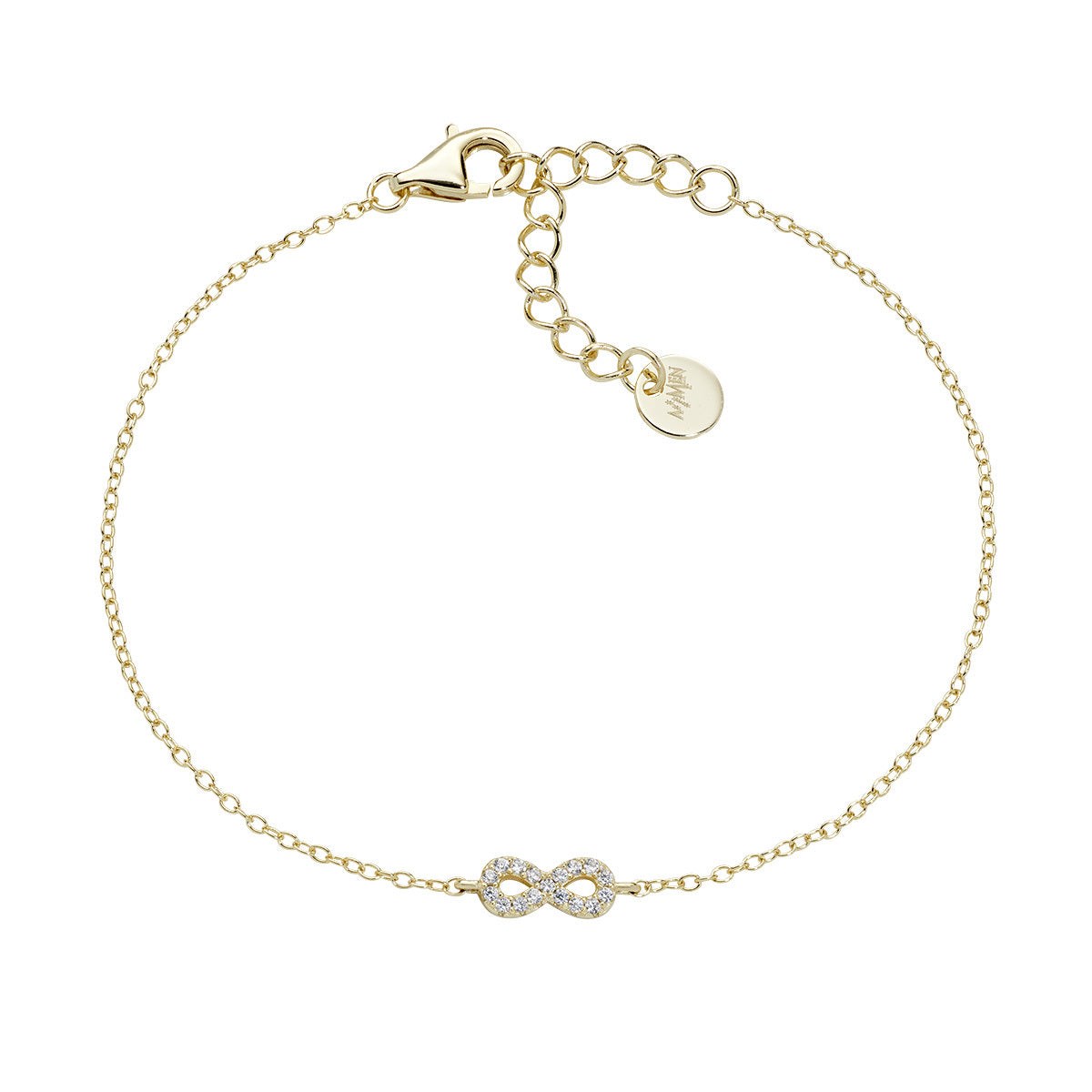 Bracciale donna amen, BRINPGBZ3, collezione infinito, in argento 925 dorato con zirconi, lunghezza regolabile da 16cm a 19cm