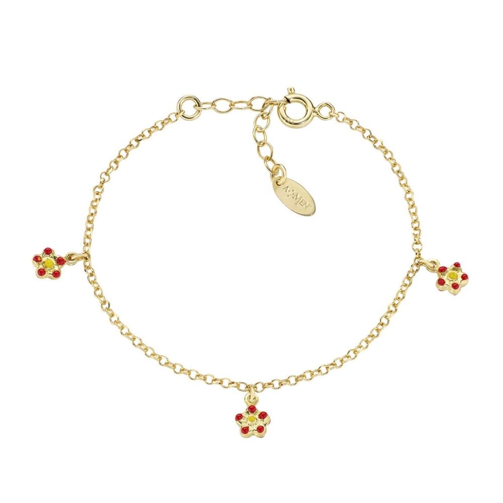 Bracciale bimba amen, BRJ3FIGR1, collezione junior, in Argento Dorato con 3 Fiori Smaltati Rossi e Gialli Misura 14+3 cm