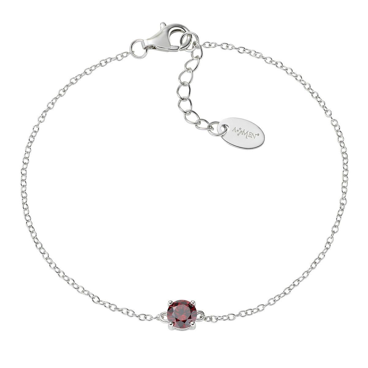 Bracciale donna amen, BRCIPBBRZ, collezione lady, in argento 925 rodiato con zircone rosso da 5 mm centrale, lunghezza della catena regolabile da 16 a 18, 5 cm con chiusura a moschettone.