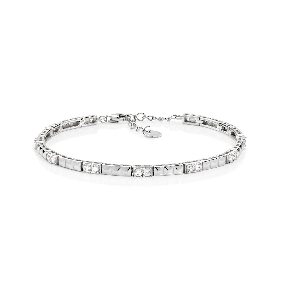 Bracciale donna amen, BRPIBBZ, collezione lady, in argento 925 rodiato con maglie a piramide e luminosi zirconi bianchi.