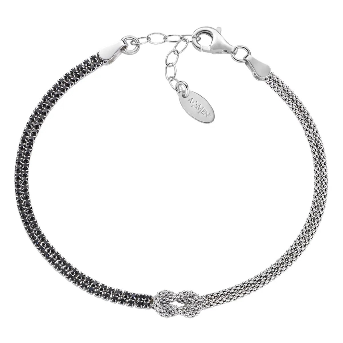 Bracciale donna amen, BRNOAMBNZ16, collezione nodo d'amore, in argento 925 rodiato con due catene unite a formare un nodo centrale.