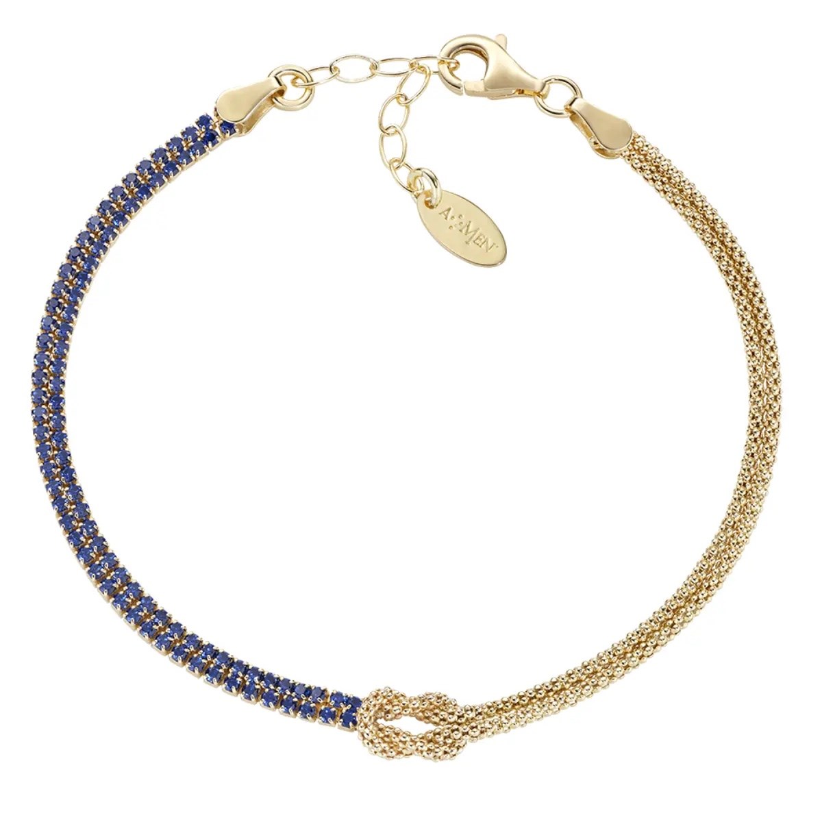 Bracciale donna amen, BRNOAMGBLZ16, collezione nodo d'amore, in argento 925 dorato con due catene unite a formare un nodo centrale.